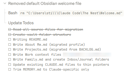 The next time I open Claude Code, it can just check the inbox, talk to me about my notes, then move them into relevant folders, update relevant files, and so on.
