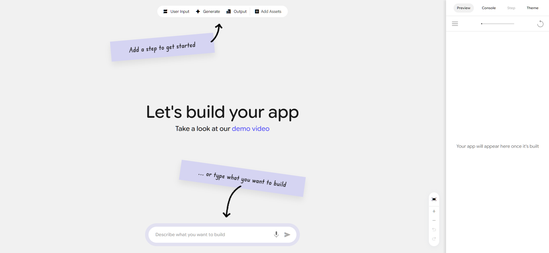 As you can see, this isn’t a fixed experience. Opal forces everything through the input-processing-output funnel, so the user has to first provide some input.