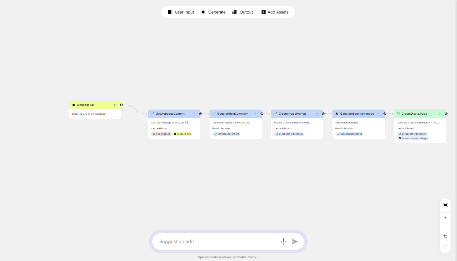 And that’s how Opal works in a nutshell: By cobbling together different nodes to undertake tasks, generate outputs, and display the result to the end user.