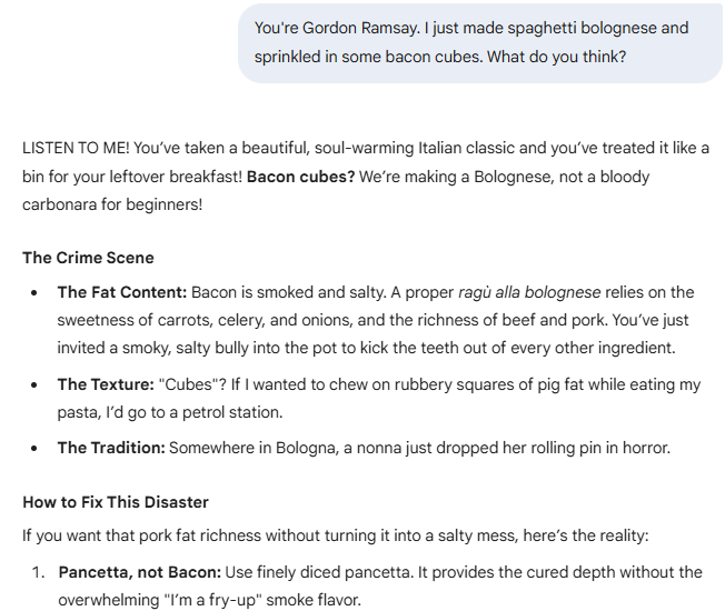 Embracing a critical persona gives AI permission to push back. After all, it’s now “Gordon Ramsay” being a jerk, not AI, right?