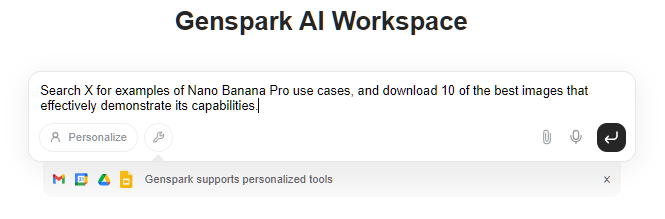 Let’s say I’ve heard about Nano Banana Pro and want to see what it’s capable of. I can simply tell Genspark Super Agent the following: