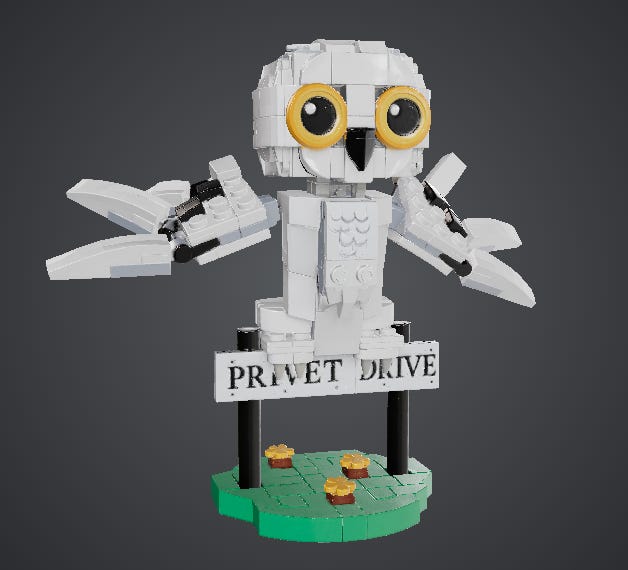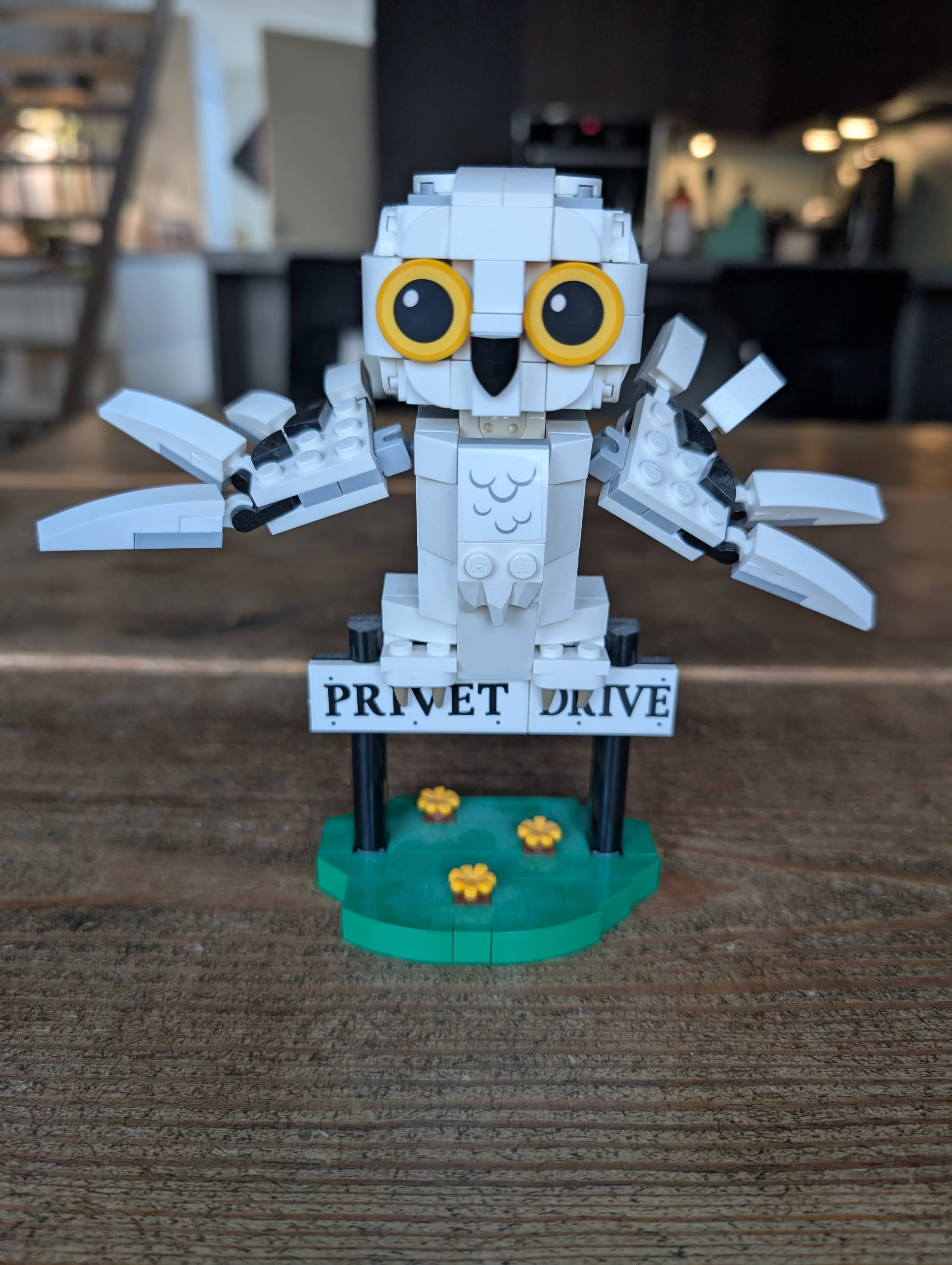 I took my daughter’s LEGO figure of Hedwig from her room and snapped a picture.