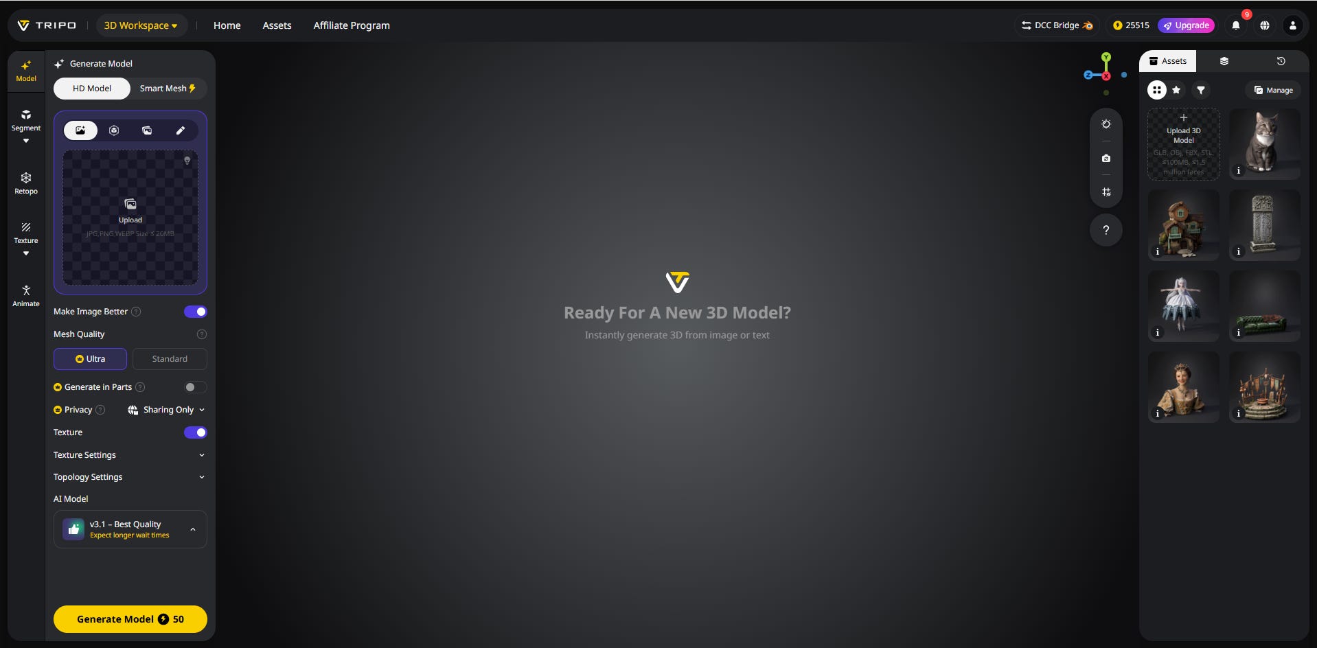 Tripo's HD V3.1 model promises production-ready 3D assets. I test it with three photos.