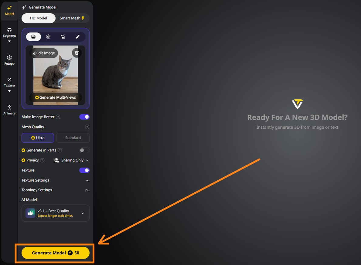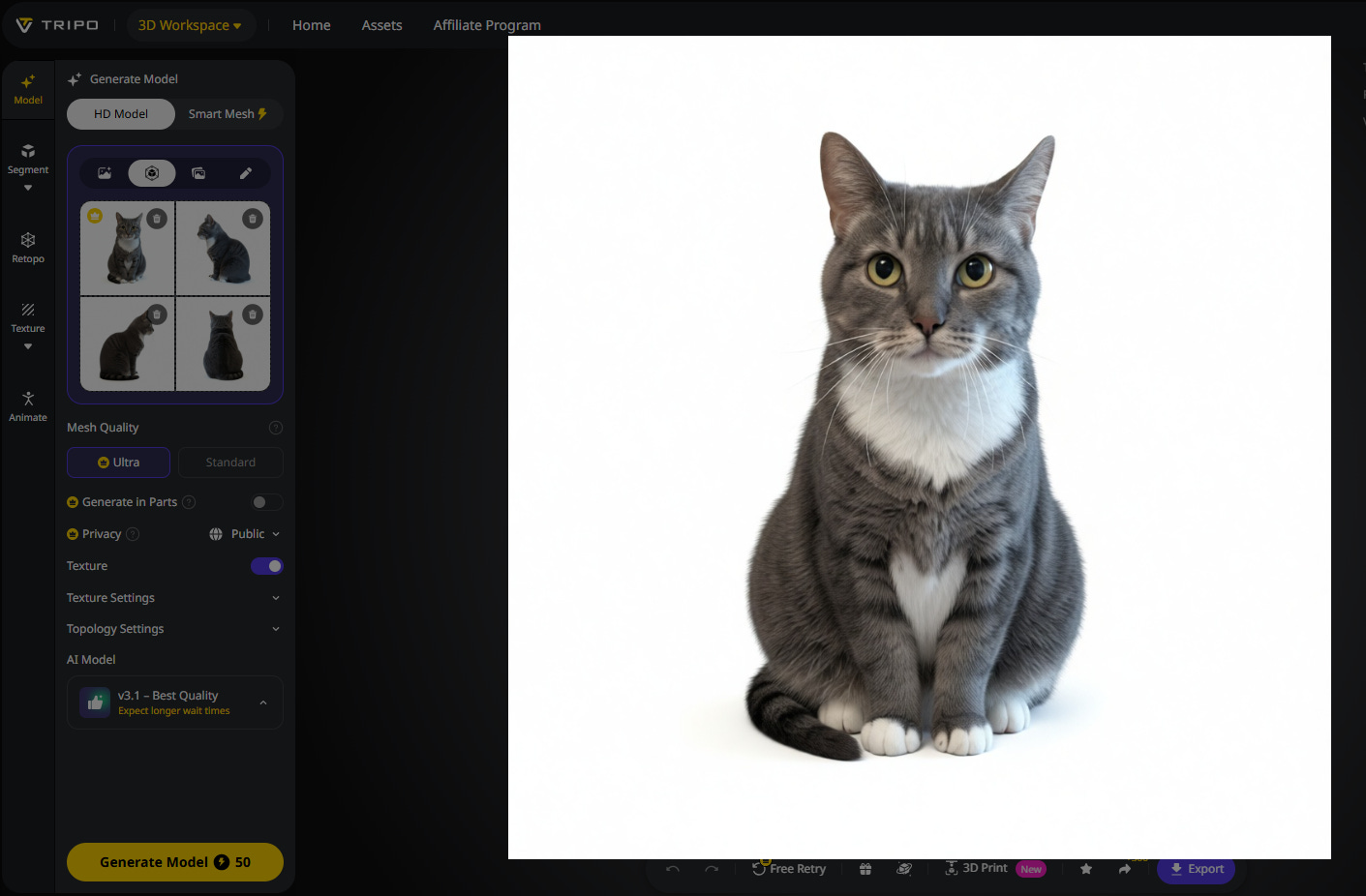 As a side benefit, this step lets you preview multiple angles before generating the full 3D render, so you know if the model is on the right track.