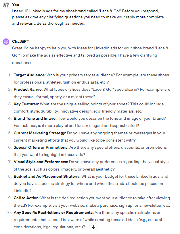 Watch ChatGPT seamlessly adjust to a request for LinkedIn ads…