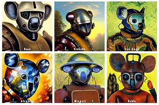 What if Vincent Van Gogh painted a robot koala? Showcasing the impact of the "artist" tag on text-to-art images.